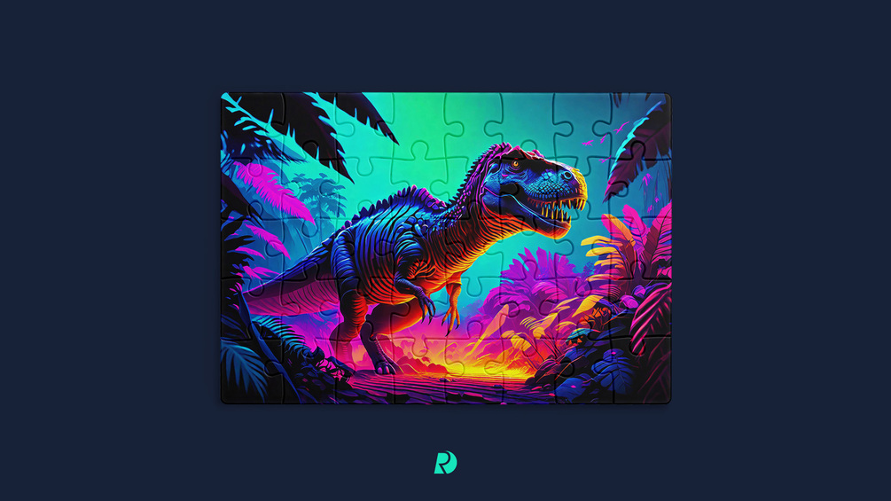 Two bright illustrations with dinosaurs in neon colors, Ideal for posters, puzzles and sublimation projects.